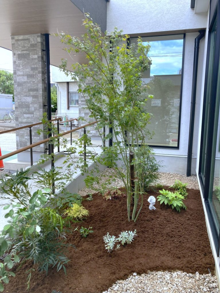 歯科クリニック様の建て替え工事に伴い、造園植栽工事を担当させて頂きました。