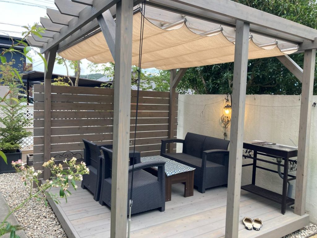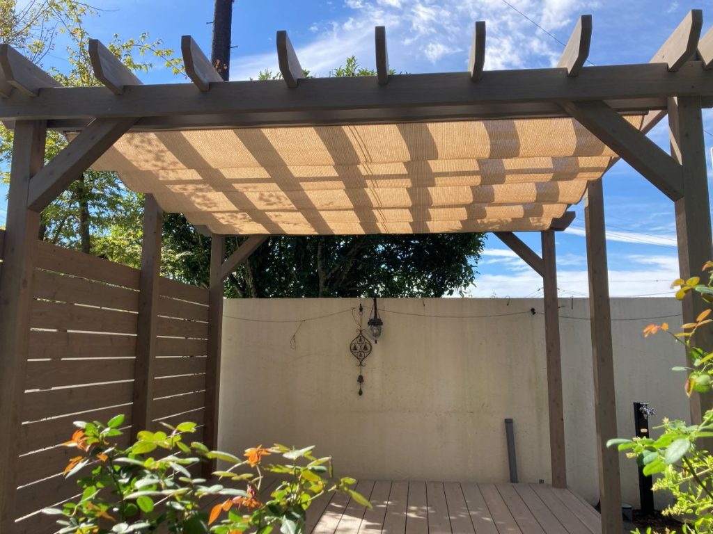 パーゴラにはシェードを取り付けました。